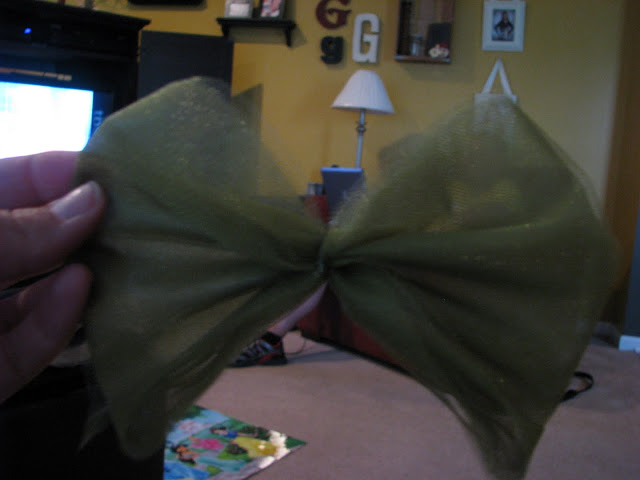 Pull the tulle off the cardstock, being careful not to unroll what you just wrapped up, and twist a piece of wire around the middle of your tulle. Snip of any excess wire with your wire scissors. You'll be left with a fabulous looking tulle bow tie :)