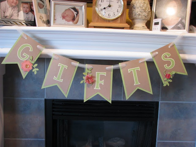 If you missed my previous posts about my banner making process, I used the Cricut Birthday Bash cartridge for the circle bases and cut them at 7 3/4". I used Alphalicous for the letters and cut them at 5". I strung cream colored tulle through the holes in the circles and attached my green tulle pom poms in between each of the letters! Voila, finished banner!
