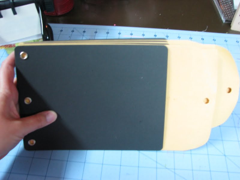 I'm going to use two different sized manila envelopes and alternate them between the chipboard pages. This is as far as I've gotten :) Now bear with me as this will be a work in progress. It could be MONTHS before this album is complete :) A lot of people are taking their albums with them, on the road. I didn't have time to get my stuff together this year, but would have loved to do that. Maybe next year, right? I did get Abie a Smash Book so she could document vacation this year :)