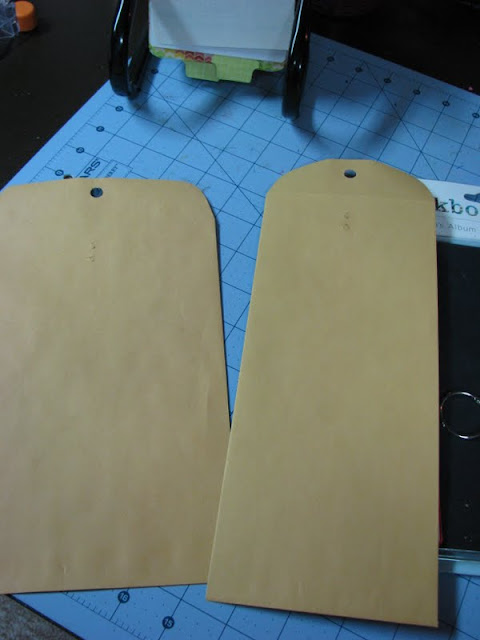 I'm going to use two different sized manila envelopes and alternate them between the chipboard pages. This is as far as I've gotten :) Now bear with me as this will be a work in progress. It could be MONTHS before this album is complete :) A lot of people are taking their albums with them, on the road. I didn't have time to get my stuff together this year, but would have loved to do that. Maybe next year, right? I did get Abie a Smash Book so she could document vacation this year :)